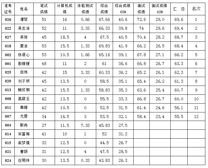 泰州消防救援支队2021年公开招聘文员 人员笔试面试成绩及总成绩公告